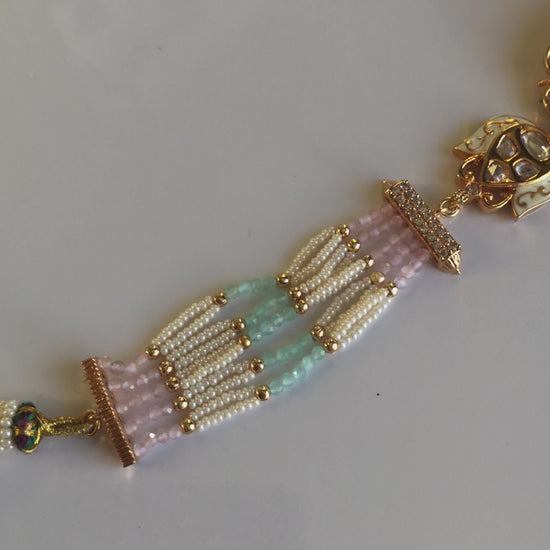 Baby Pink & Ocean Green Choker Necklace Earring Set