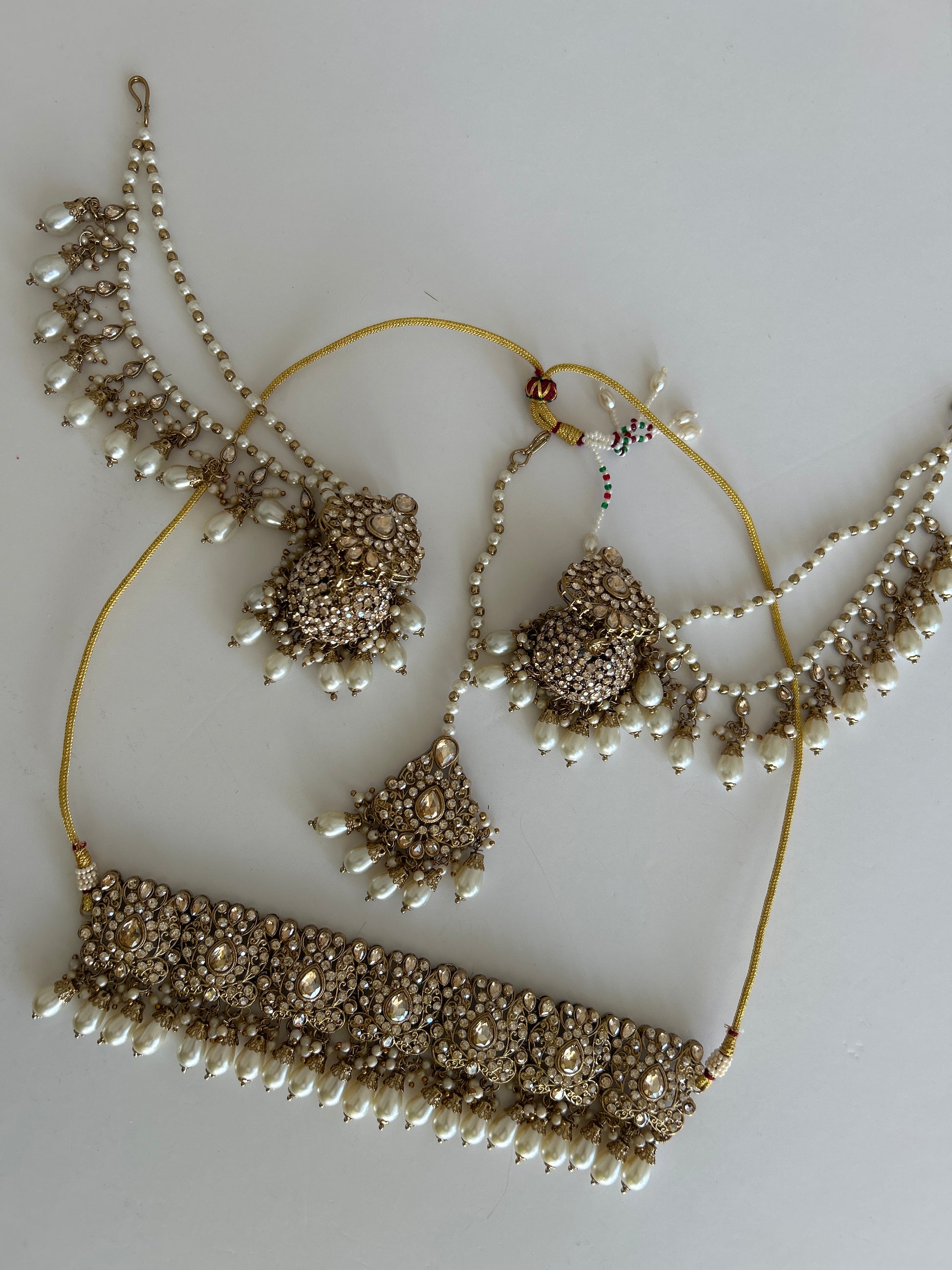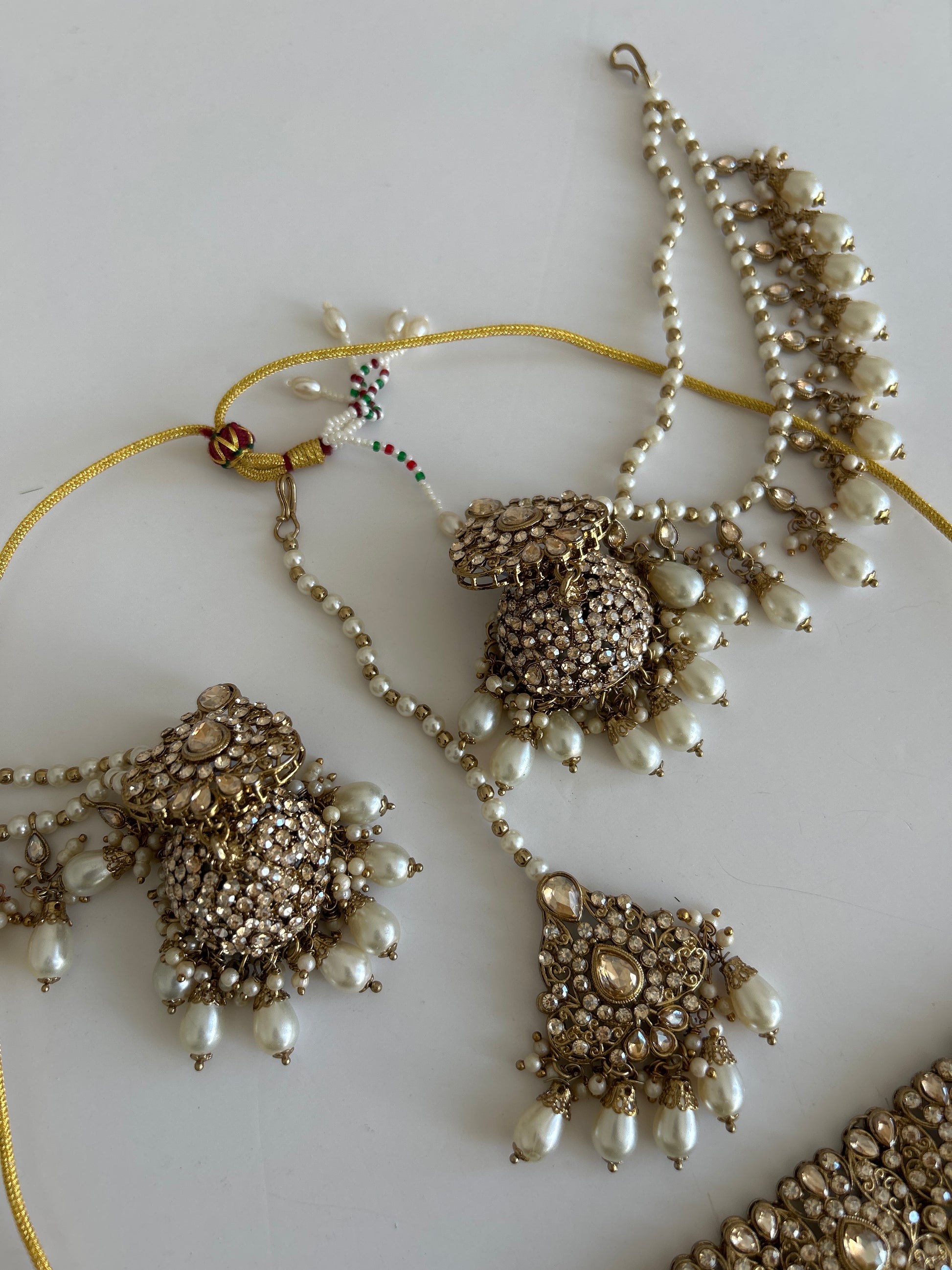 Gold Jumke Sahara Necklace Earrings Tikka Set
