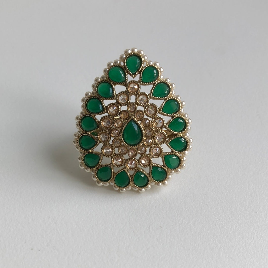 Green Pearl Crystal Ring
