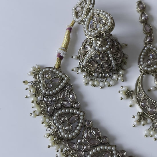 Pearl Heart Jumke Necklace Earring Tikka Set