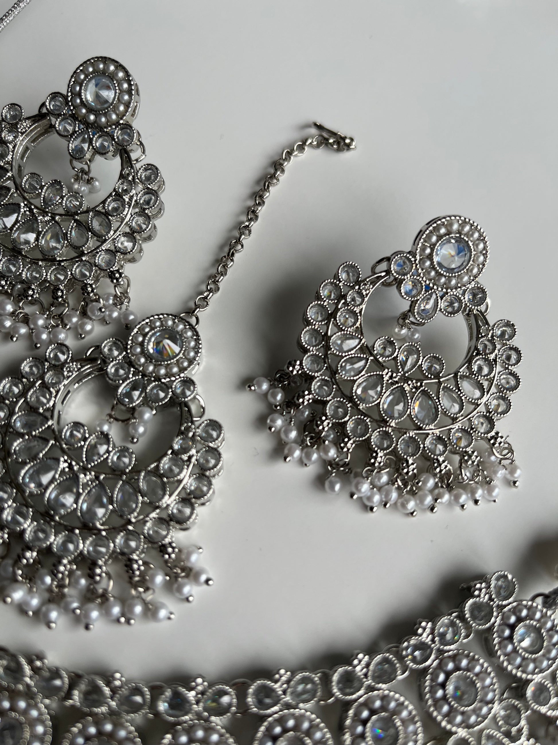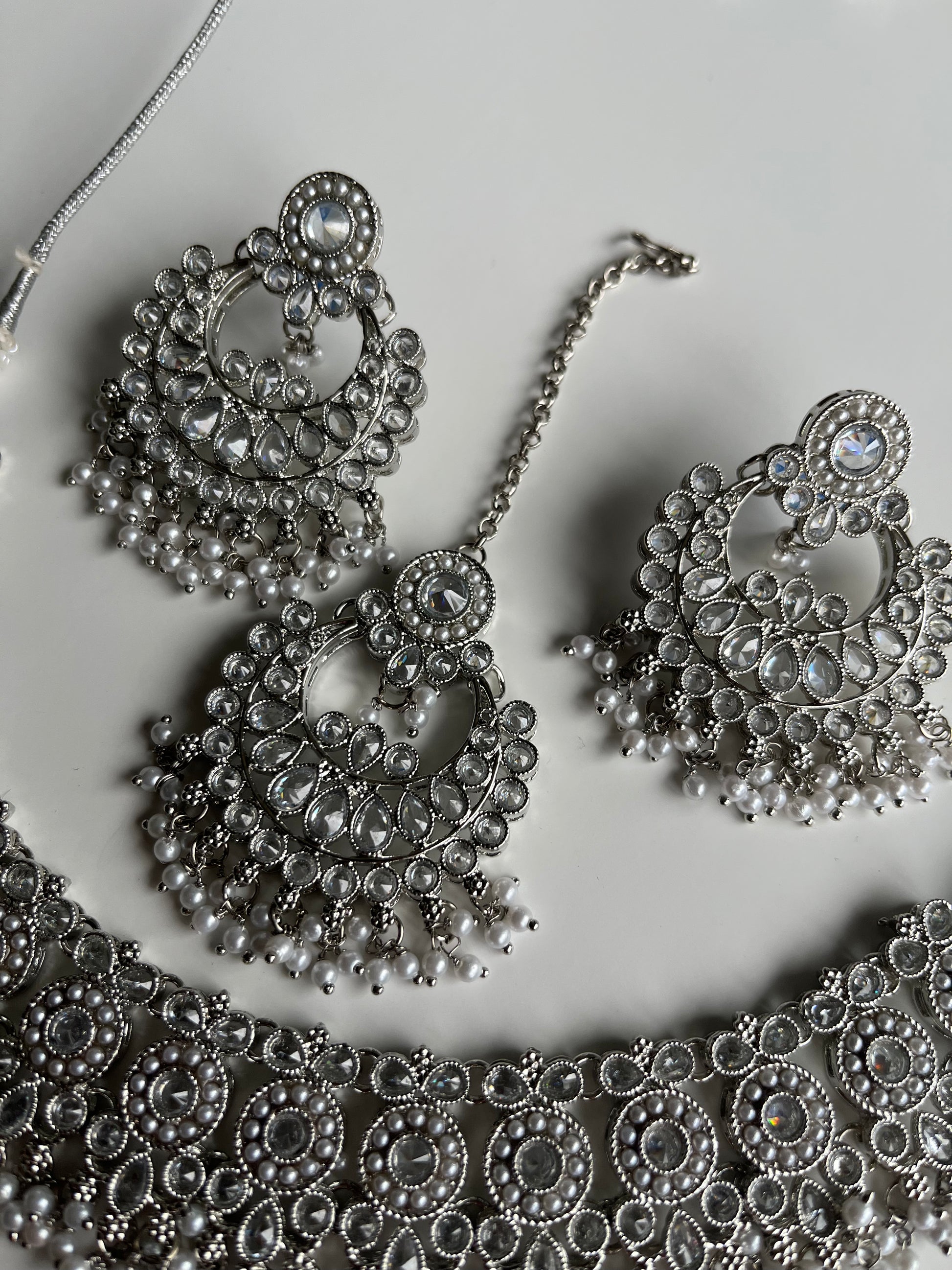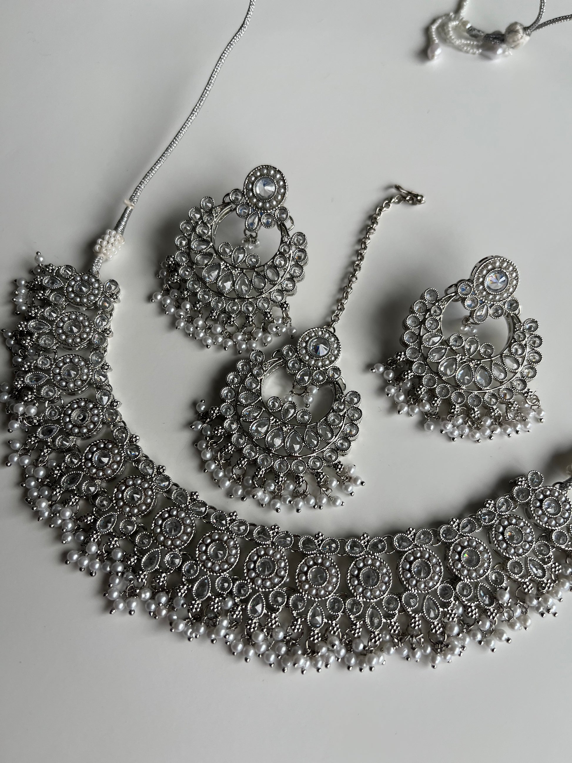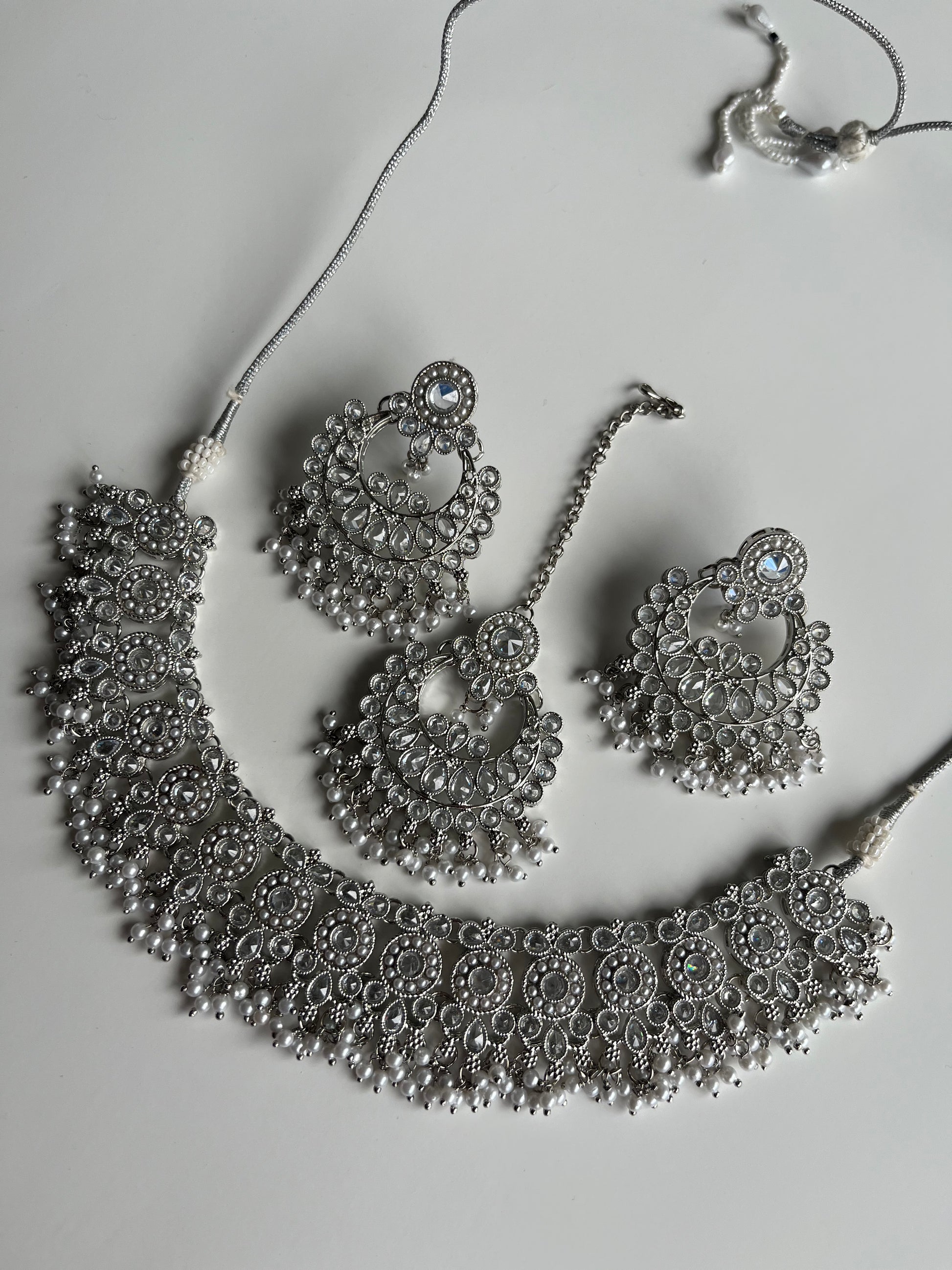 Pearl Polki Silver Necklace Set